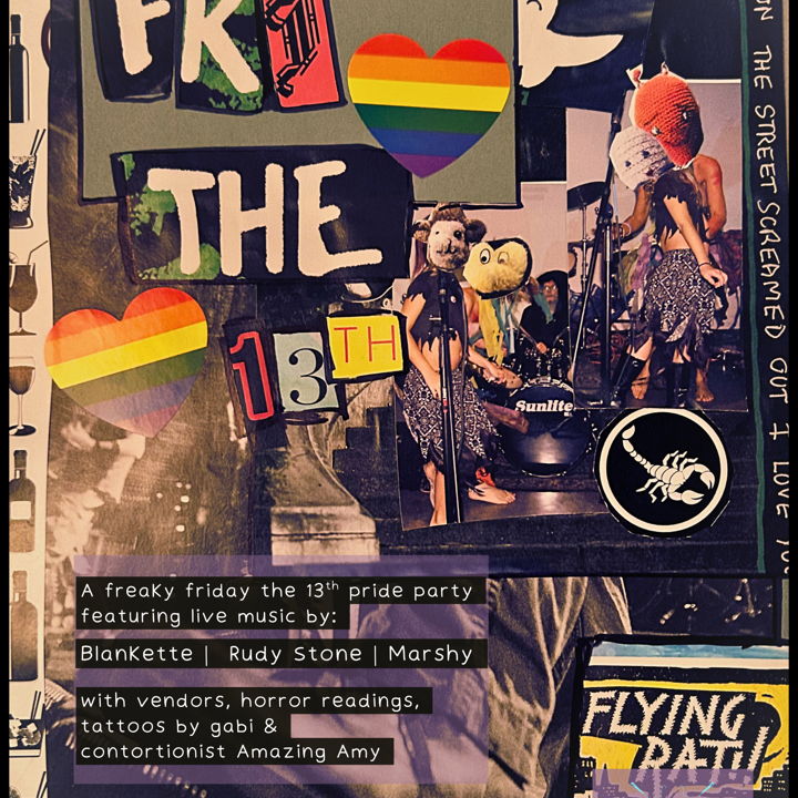 Friday the 13th: PRIDEBlankette | Rudy Stone | Marshy Vendors + Tattoos by Gabi Pop up Horror readings & Amazing Amy