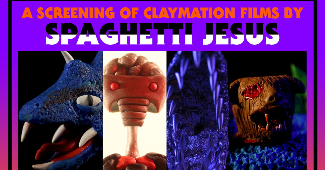 Join us Saturday October 15th for a screening of 5 short clay-animated films by Spaghetti Jesus, along with a reel of unedited or unreleased animations, followed by a short Q&A by the creator.