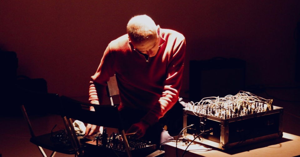 Jason Kahn’s work with electronics involves chaotic feedback systems and placing his body in the circuit flow. Grabbing open leads with the hands makes and breaks circuits, causing the synthesizer to overload or momentarily collapse.