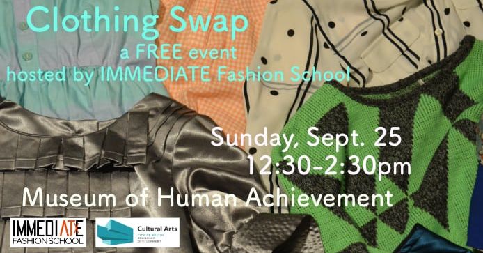 IMMEDIATE Fashion School will be hosting an old-fashioned clothing swap! We're all broke and have stuff we don't wear anymore, right? So come get some new-to-you clothing items. Bring your own good-condition, high-quality items and trade them in for someone else's!