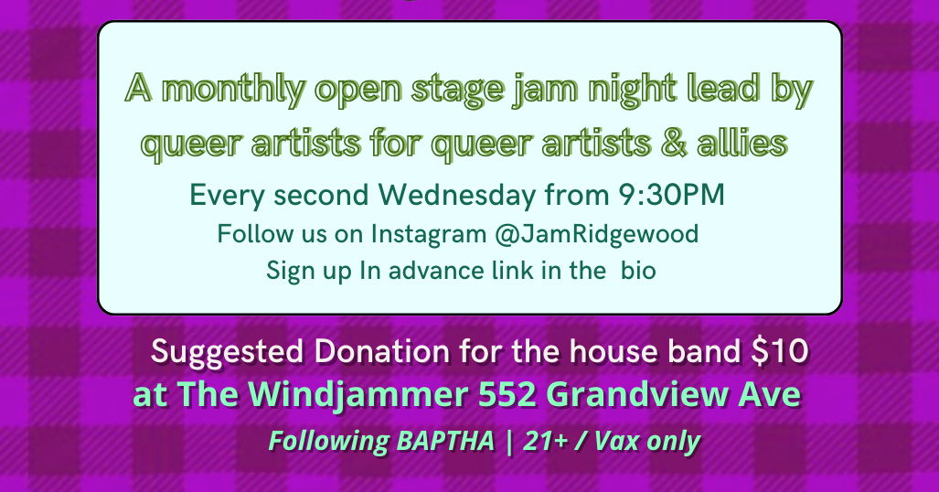 Bring your instrument or borrow one of ours. You can sign up in advance through the form in the bio @jam_ridgewood on instagram or just show up!