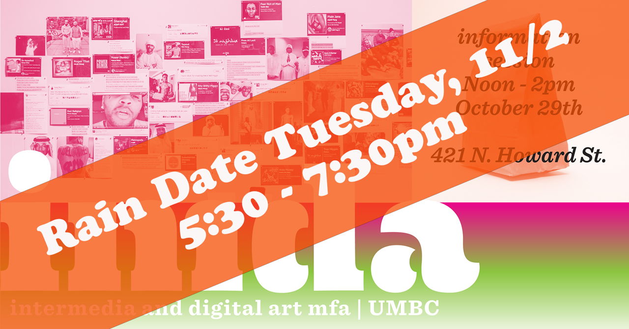If you are opting to attend remotely, they will be streaming on Facebook at https://www.facebook.com/UMBC.IMDA . The broadcast will begin at 6pm, beginning with their presenter Chad Eby (’06) and continuing with an introduction to our newest cohort, the class of 2023. They will then open to a Q&A session about the IMDA program—you will be able to ask questions or offer comments via the chat on Facebook.