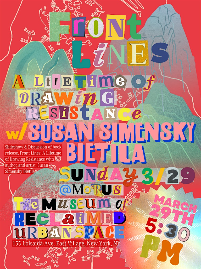 Come and join the BOOK LAUNCH for Front Lines: A Lifetime of Drawing Resistance with Sue Simensky Bietila