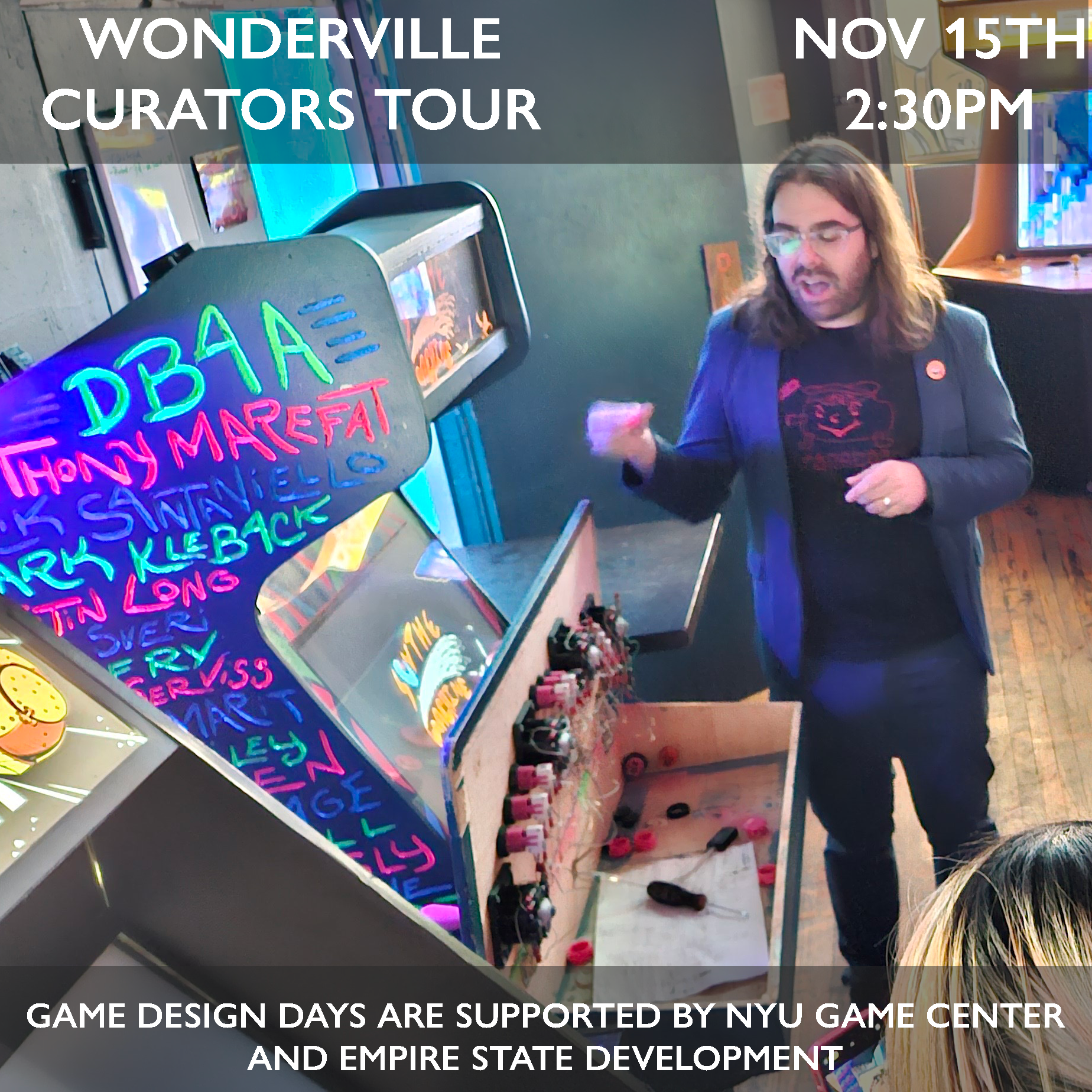 Come out to Wonderville in the afternoon of November 15th for a special curator's tour led by co-owner Mark Kleeb! Mark will go through the arcade and talk about the games and developers behind them. We'll open up some of the cabinets and take a look at how the controls are programmed and how the cabinets are constructed, followed by an hour of freeplay so attendees can play the games at their leisure.