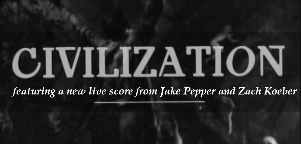 Closing out 2025's programming year is our third collaboration with local improvisational musicians Jake Pepper and Zach Koeber, performing a heady new score for what is widely regarded as the first anti-war film. CIVILIZATION tells the story of the fictional nation Wredpryd and the doomed naval siege led by engineer and commander Count Ferdinand (Howard C. Hickman). This disaster brings the Count on a journey through the afterlife, where none other than Jesus Christ (George Fisher) is forced to reckon with humanity's resistance to true peace. A dramatic epic, both biblical and humorous, and as starkly relevant now as it was over 100 years ago, Spectacle is thrilled to bring you this historical picture through an expansive new score.