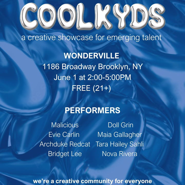 coolkyds is hosting its start of summer showcase at Wonderville, bringing together the raw talent and unstoppable energy of emerging artists, musicians, DJs, and spoken word performers. This isn’t just a show—it’s a movement. A space where creativity thrives, connections spark, and the next generation of artists step into the spotlight.