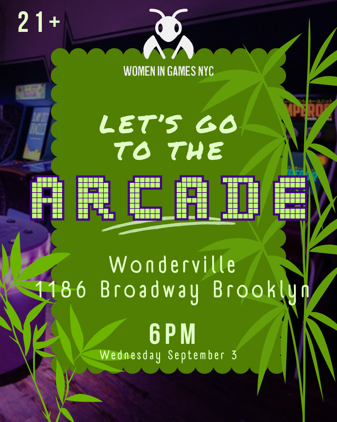 Come hang out with Women in Games NYC at Wonderville! Event from 6pm to 8pm and Open bar from 6pm to 7pm.