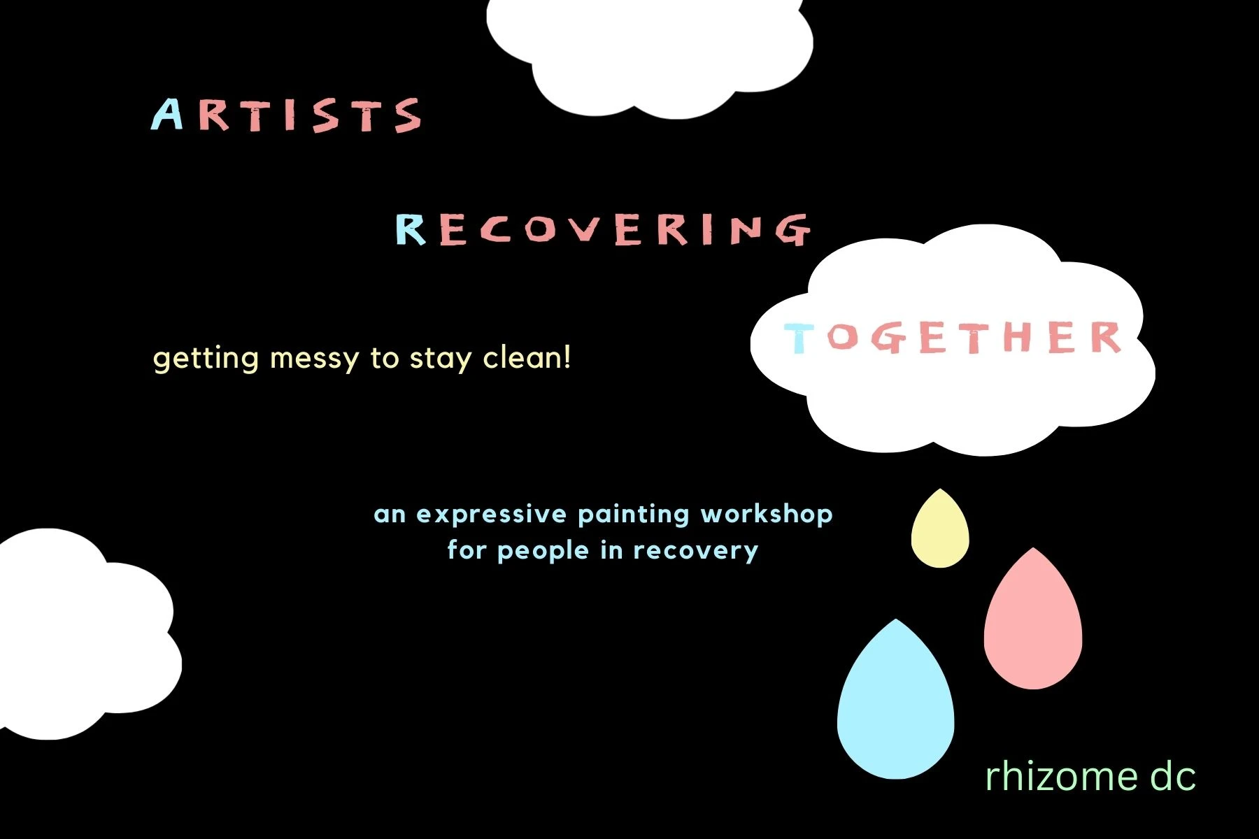 In this workshop we will use acrylic inks to create process-based paintings in community with others recovering from addiction. Goals include connection with others, gaining a deeper understanding of our inner worlds, and discovering new ways to use art as a coping mechanism. Facilitated by Kanchan Balsé. Materials included. Email info@rhizomedc.org for scholarships.