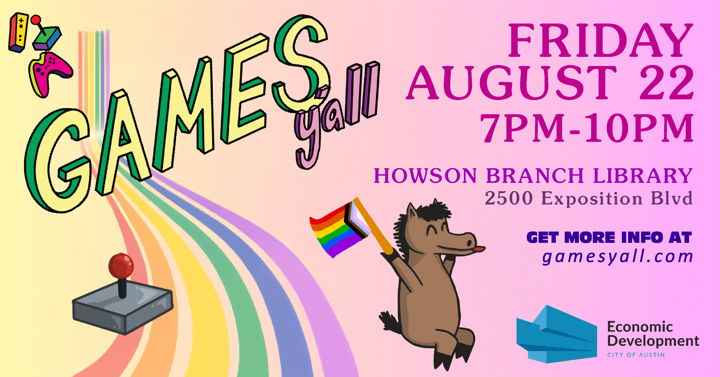 Join us on Friday, August 22nd from 7-10pm at the Howson Public Library Branch for Games Y'all Pride Edition!
