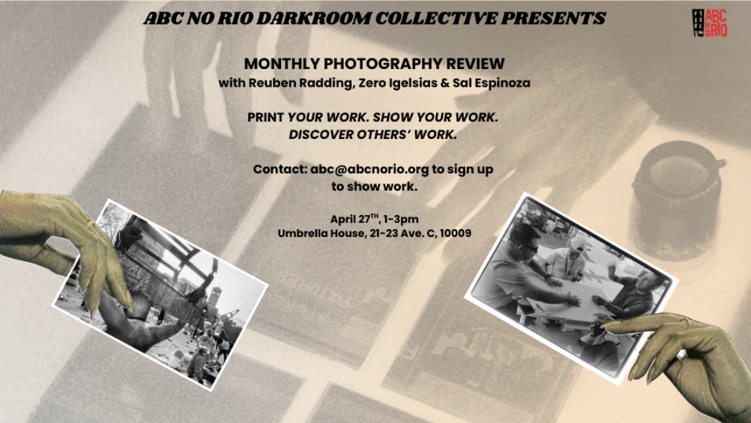 Starting April, 27th, members of the ABC No Rio Darkroom Collective present a regular photography review/critique event.