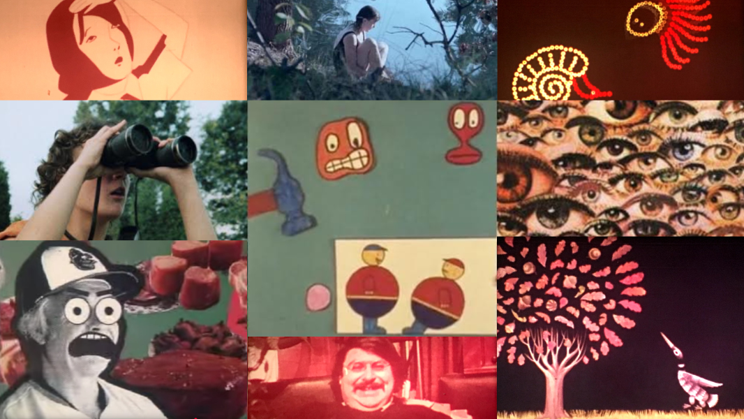 Our program begins with a film made of cut paper animation by Evelyn Lambart, who worked on many film projects with Norman McLaren. “Fine Feathers” tells a story of two birds and their battle of fashion and vanity. 1968.