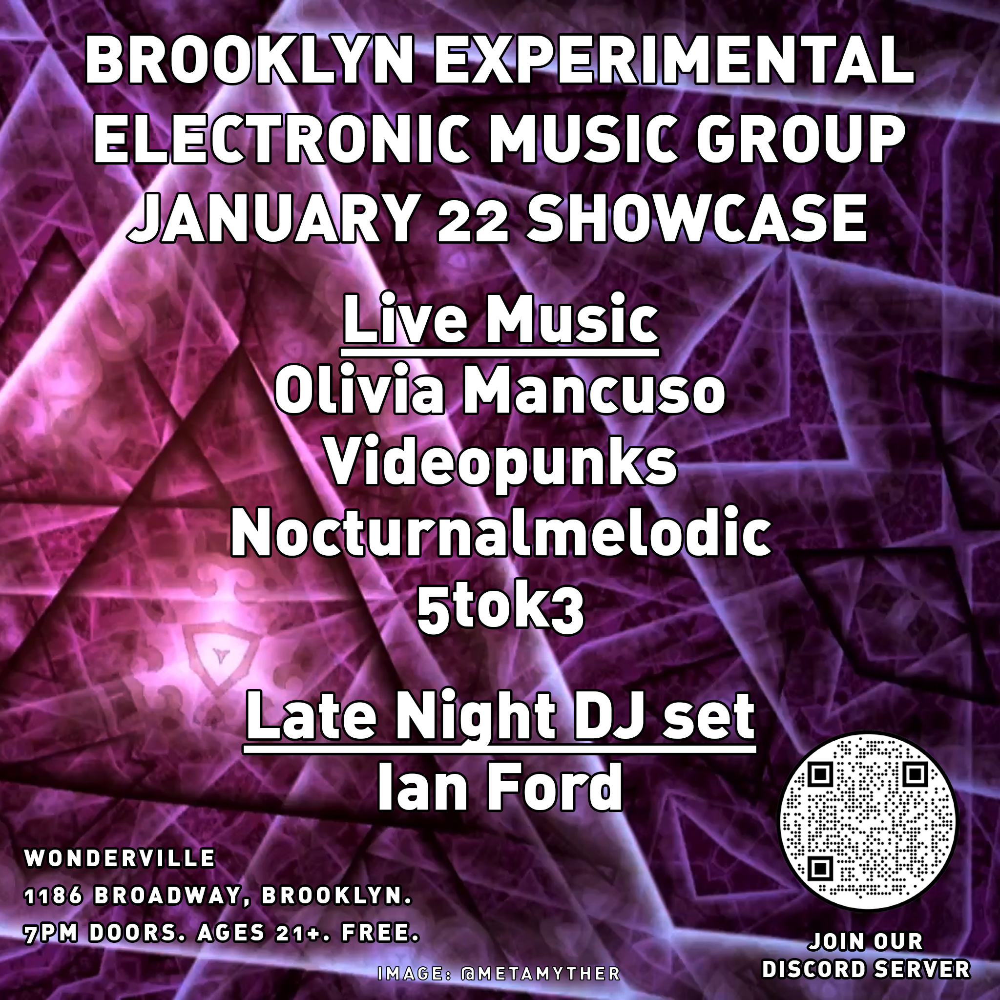 Join the local electronic music community for our showcase featuring an eclectic mix of New York City artists working in a variety of styles. This month's performers: Olivia Mancuso @oliviamancusomusic, Videopunks @vxpx.info, Nocturnalmelodic @illust_al / https://m.youtube.com/@Nocturnalmelodic, and 5tok3 @5tok3. Organized by Metamyther #electronicmusic #brooklynmusic #brooklynlivemusic #nyclivemusic #techno #modularsynthesizer #eurorack