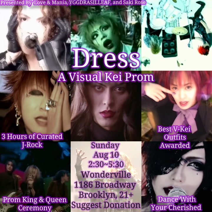 Ask someone to bring your prom date, dress to the nines with your best V-Kei inspired outfit, and bring yourselves down to Brooklyn's FINEST art space, Wonderville, on Sunday, August 10th from 2:30 PM to 5:30 PM.