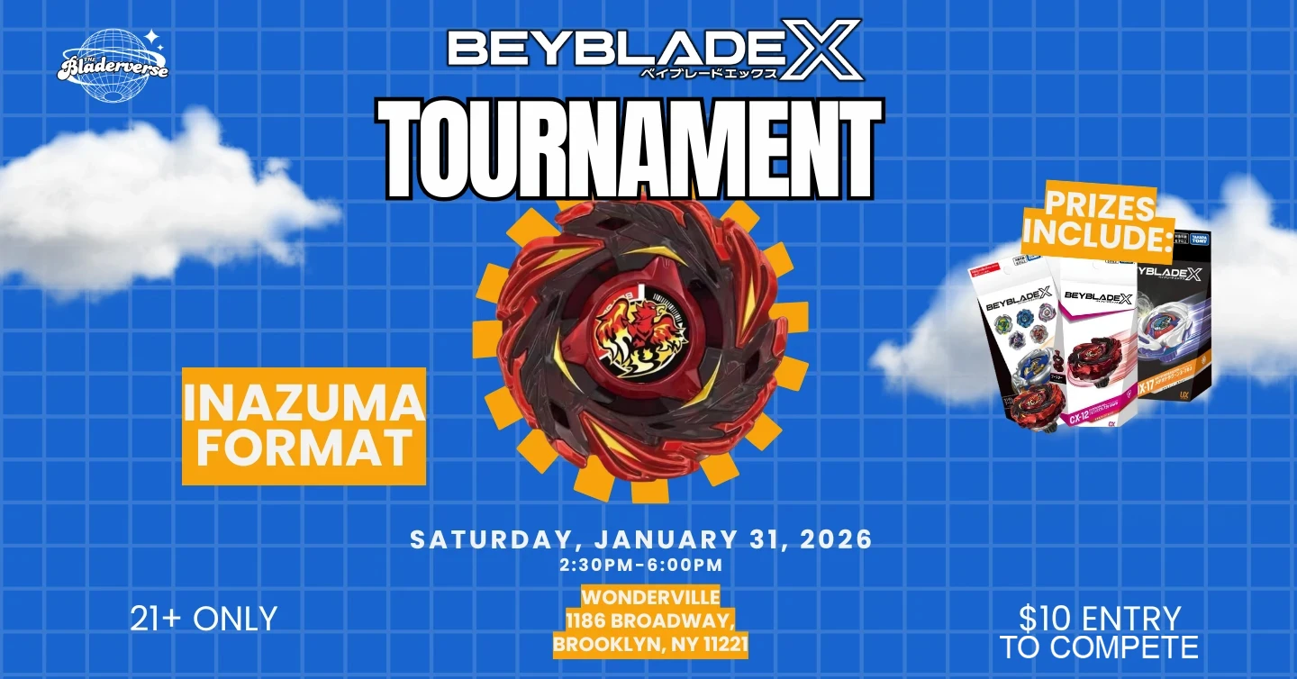 This Beyblade X Tournament means official Beyblade X gear can be used only (Hasbro or TakaraTomy). The stadium used will be the Beyblade X stadium. Bringing your own Beyblade deck is highly recommended.