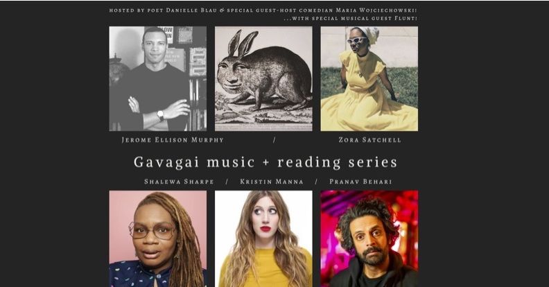 Gavagai is a monthly performance series curated and hosted by poet Danielle Blau - and, now (starting May 2022), by comedian Bronwyn Isaac! - that brings you poetry and fiction readings - and, now (starting May 2022), COMEDY! - scored with original live music by composer-improviser-bassist Mike Brown, with other skilled improvisers (piano-players, guitarists, horn-players, drummers, harpists, cellists, violinists, vocalists, who knows?) usually dropping in onstage as guest-musicians.