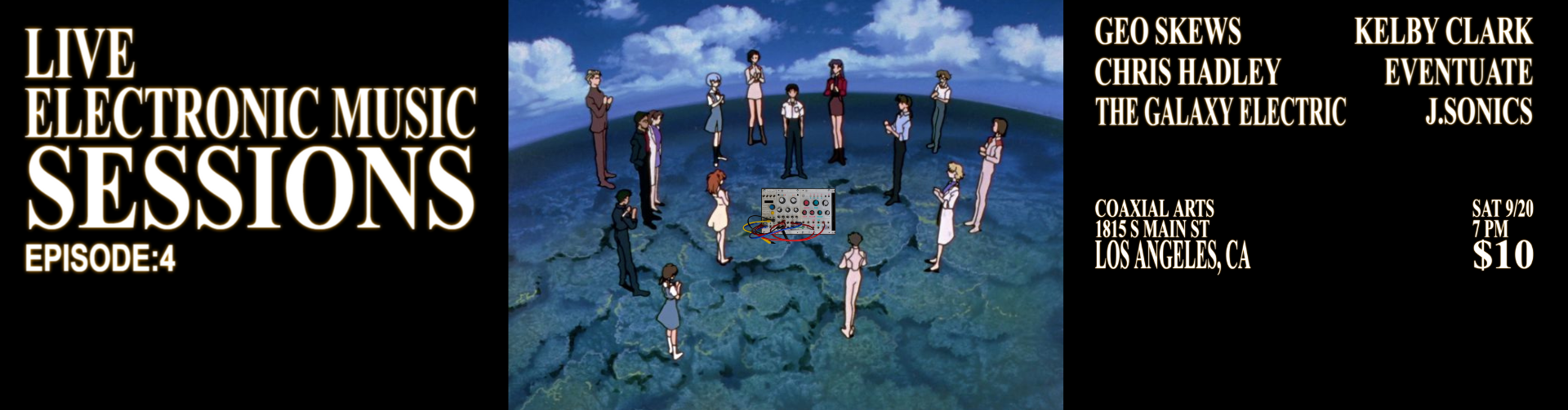 LEMS presents our 4th Live Electronic Music Session! Featuring sonic explorations and experimental sound from Geo Skews, Kelby Clark, The Galaxy Electric, Chris Hadley, Eventuate, and J.Sonics