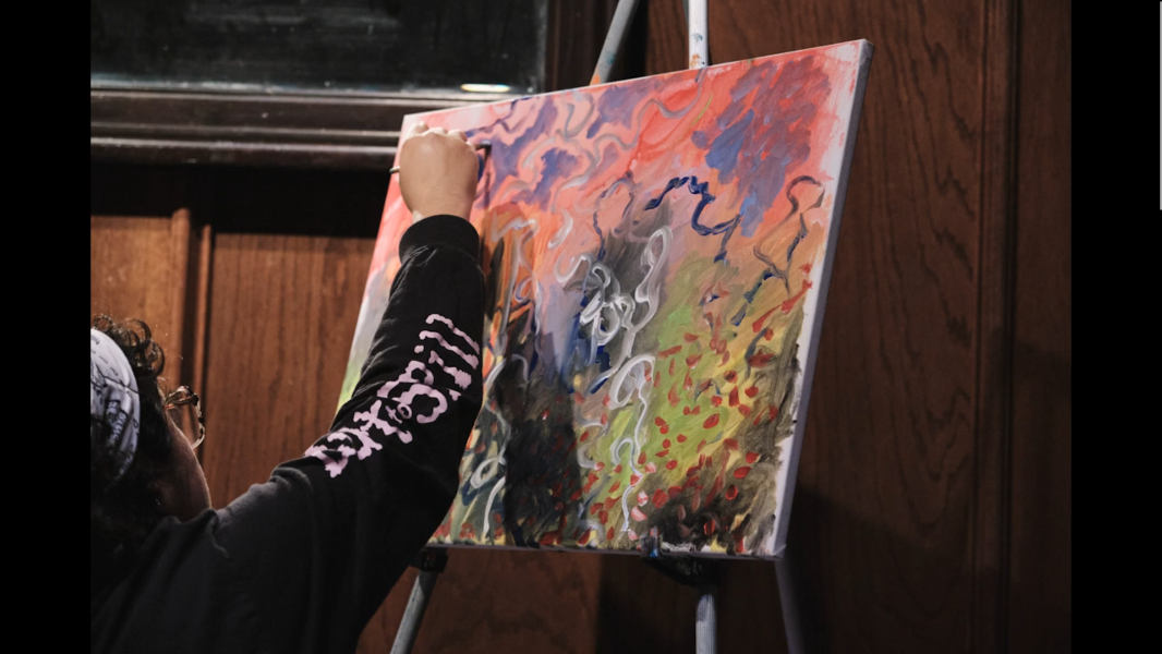 The Art Jam Collaborative performs cohesive improvised sounding and painting. Founded 2 years ago by visual artist April Enelly Galvan and sound artist Joseph Sioui, the Denton, Texas-based act has notably performed at the Joan of Bark Concert Series.