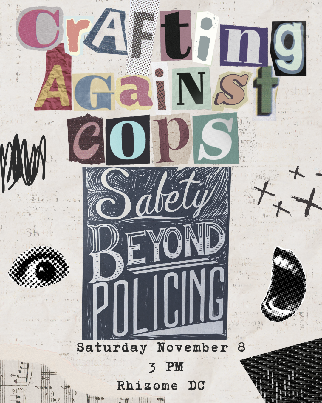 As ICE, federal law enforcement, and the National Guard continue their monthslong presence in DC, it's important for us to remember that it's up to us to keep each other and our neighbors safe. Join us on Saturday, November 8th at 3 PM for an afternoon of crafting, community, and conversation around policing and abolition.