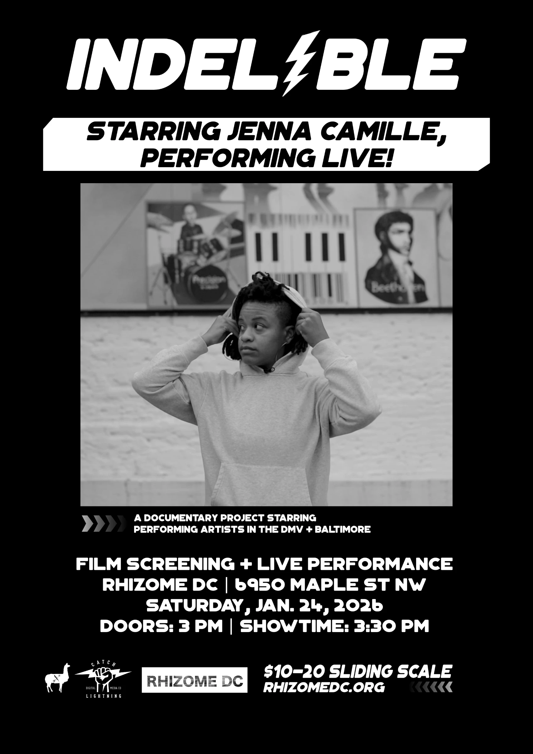 "INDELIBLE" is a hybrid documentary series highlighting performing artists in the DMV and Baltimore. Since 2018, series creator Antonio Hernandez (aka "Electric Llama") has published 15 episodes, and has screened unique edits of the film at venues such as Busboys and Poets, Suns Cinema, Eaton Hotel and The Village Cafe.