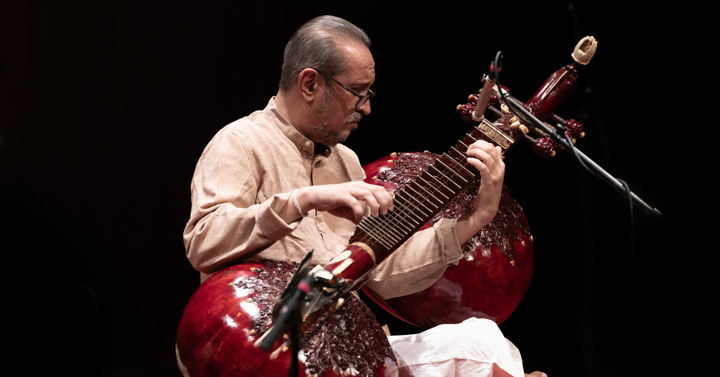 Born in Mumbai in 1970, Bahauddin began studying sitar at age seven with his mother, Smt. Pramila Dagar, and later became a student of his father, the illustrious rudra veena player and teacher Ustad Zia Mohiuddin, and his father’s brother, renowned singer Zia Faridudin Dagar. Since his formal debut as a musician in 1990, Bahauddin has become acclaimed for his highly responsive playing style, his expansive, prayerful sound, pursuit of dhrupad’s evolution, and commitment to Dagarvani’s engagement with European and American musicians, composers and audiences.