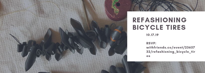 Disrupt the flow of consumption by flipping concepts of fashion and garbage. Refashioned Garbage workshops focus on learning techniques and designs to upcycle discarded materials into beautiful objects. For this workshop, transform discarded bike tubes and tires into bracelets, earrings, headbands, pouches, rings, key chains, or another inspiration.