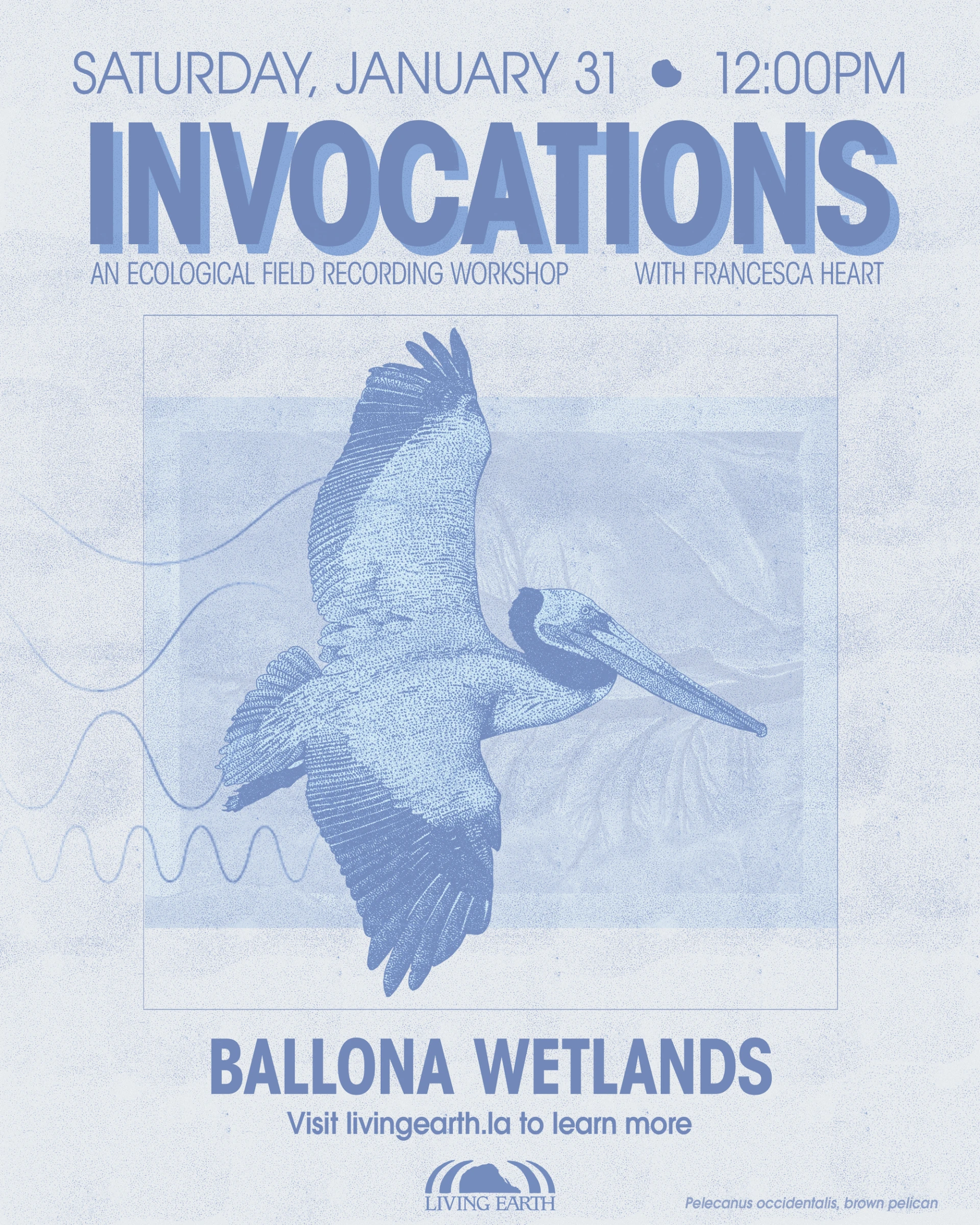 Throughout the afternoon we’ll chat field recording, the acoustic ecology of Los Angeles, and utilize accessible amateur recording technology. The project encourages shared, collective vulnerability, in order to create new myths and narratives that explore oceanic imaginaries, renewal and belonging, and ecological sensitivity.
