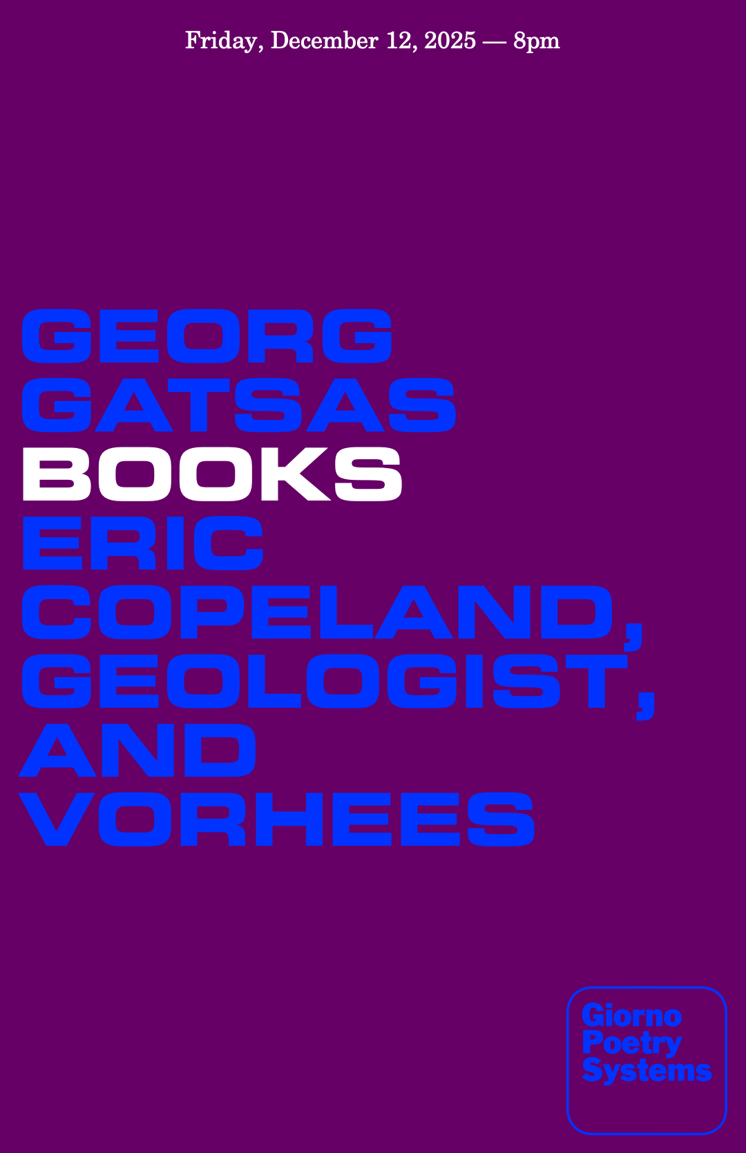 To address these questions, and to celebrate the release of The Process, Georg has asked three of his favorite performers, Eric Copeland, Geologist, and Vorhees—people whose work he first encountered in the years of the book—to play solo sets.