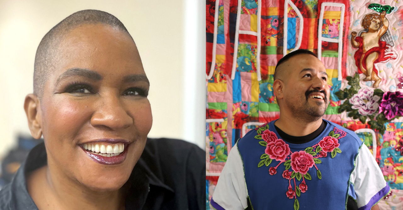 San Francisco based mixed-media artist Alexander Hernandez creates textile works, prints and other mixed media art exploring the intersectional identities of the immigrant experience, queer sensibilities, gender expectations, and HIV+ survival.