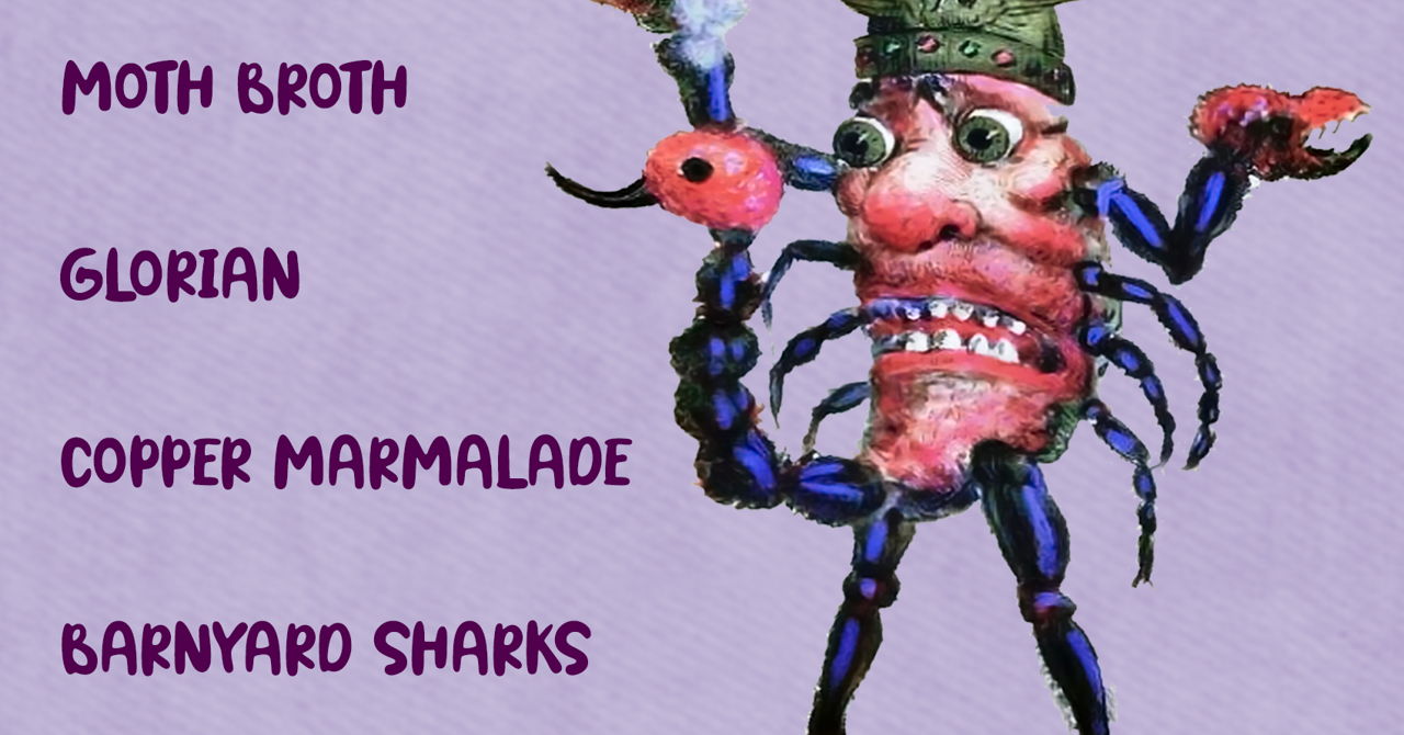 Barnyard Sharks, Copper Marmalade, Glorian, and Moth Broth