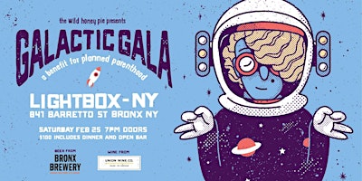 Join us for an out of this world evening for music fans who want to support Planned Parenthood in a meaningful way. The Wild Honey Pie is proud to present Galactic Gala, an outer space themed event featuring a full evening of music from Jukebox the Ghost, Rubblebucket and pronoun as well as a delicious meal with all the fixings, free beer and wine and silent auction. Our goal is to garner support and funding for this immensely important organization under attack by the Trump administration.