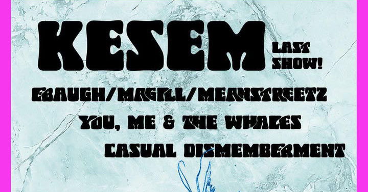Kesem, one of the leading lights and best-kept-secret's of So-Cal space-prog, are sadly bidding us fairwell! So let's be sure to give them an enthusiastic send-off with one final show at Coaxial! The foursome will be supported by pals You, Me, & The Whales, a trio of Ryan Ebaugh, Rob Magill, and Mike Meanstreetz, and Scott of Slurred Oath's solo noise behemoth Casual Dismemberment. A night to send your brain into the stratosphere. Don't miss your chance to catch Kesem before they shoot off into the stars!