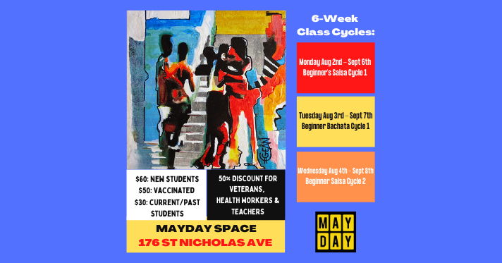 -- Returning Students (if you have taken Salsa at Mayday before): $30 (email us to receive the link to the discounted ticket)