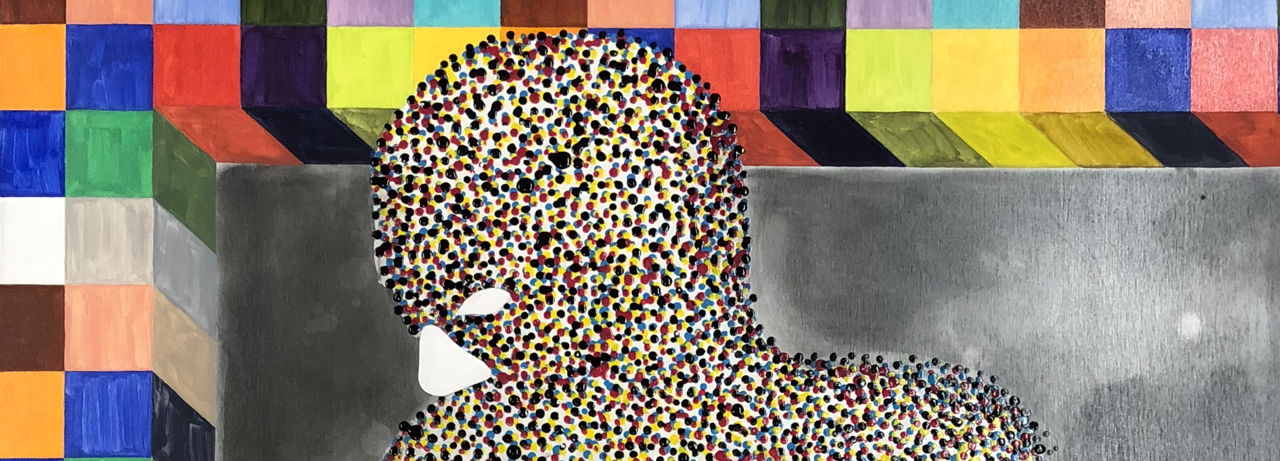 MANIFOLD showcases four artists who take up colorful abstraction in painting and drawing to stretch the space that these two-dimensional mediums inhabit and depict. Amidst fragmented resonances of abstract forms, Nate Flagg, Alex Jackson, Nadia Haji Omar, and Alexandria Smith depict somersaulting bodies and shimmering ciphers to explore a kind of vibrating space that exists just below the surface, a ripe space where bodies fold and twist as two-dimensional beings occupying and expanding three-dimensional space.