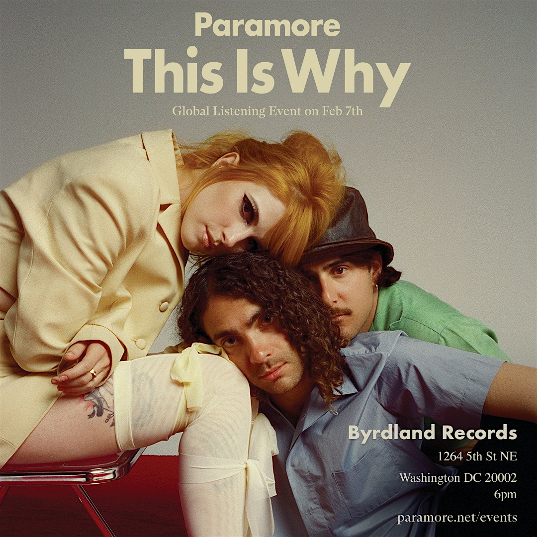Paramore fans! We're looking forward to hosting you TOMORROW NIGHT 2/7 at Songbyrd Music House (540 Penn Street, N.E.) for the exclusive pre-release listening party of new Paramore album "This Is Why"!