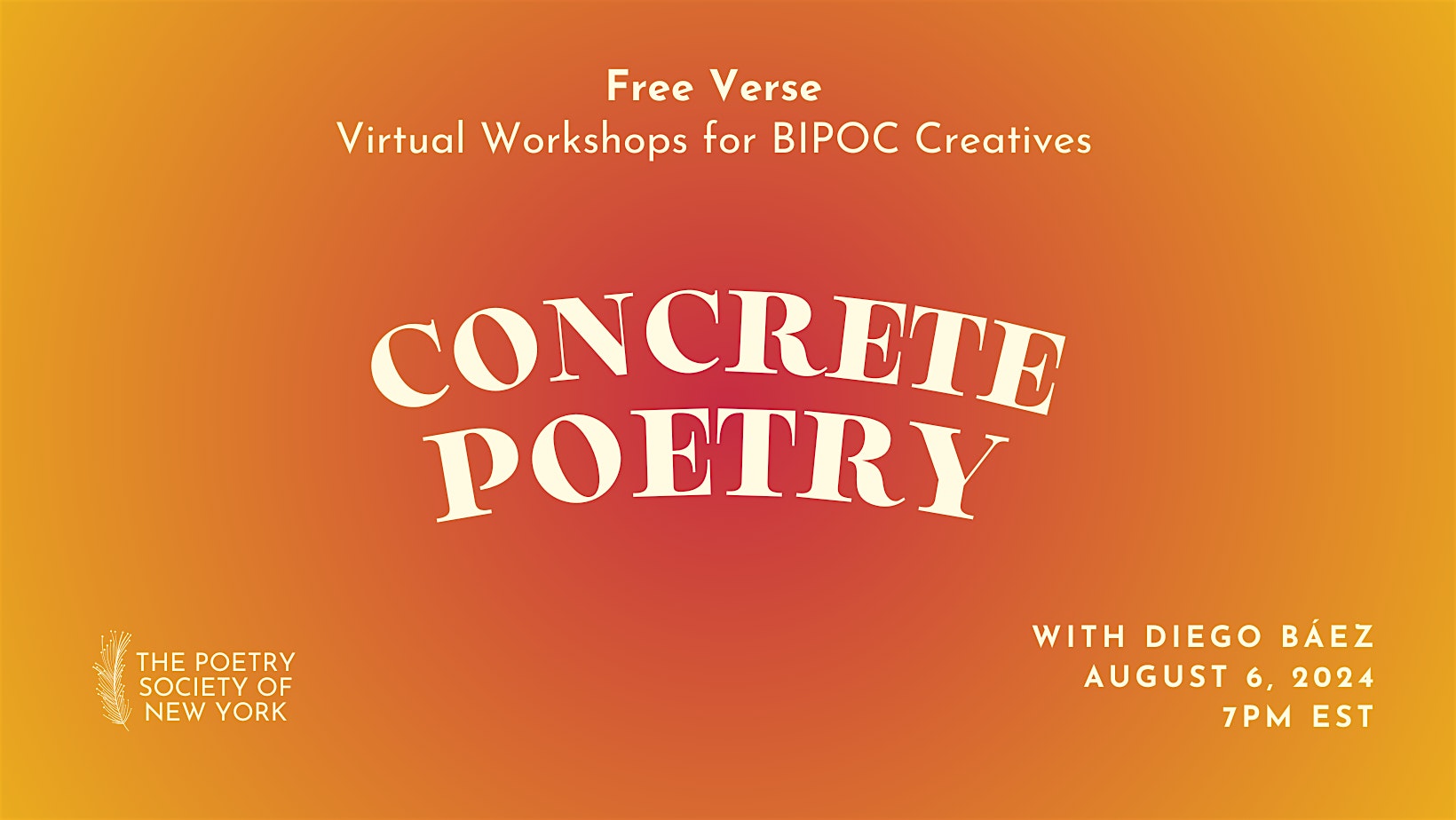 This workshop is taught by and for Black, Indigenous, and other Persons of Color with an interest in poetry. We invite folks to connect in this safe, generative, BIPOC-centered space: to share work, experiences, and discourse. At the end of every workshop, we welcome the sharing of resources, such as literature, community events, and grants available for application. Respectfully and consensually connecting with other members outside of the space is encouraged. If you are not BIPOC-identifying, we kindly invite you to attend other PSNY events. While topics do not necessarily center around being BIPOC, this community space is designed specifically for the BIPOC experience. Attendees of our Monthly Free Workshops for BIPOC Creatives receive a 50% off discount code for our Weekly Virtual Workshops!