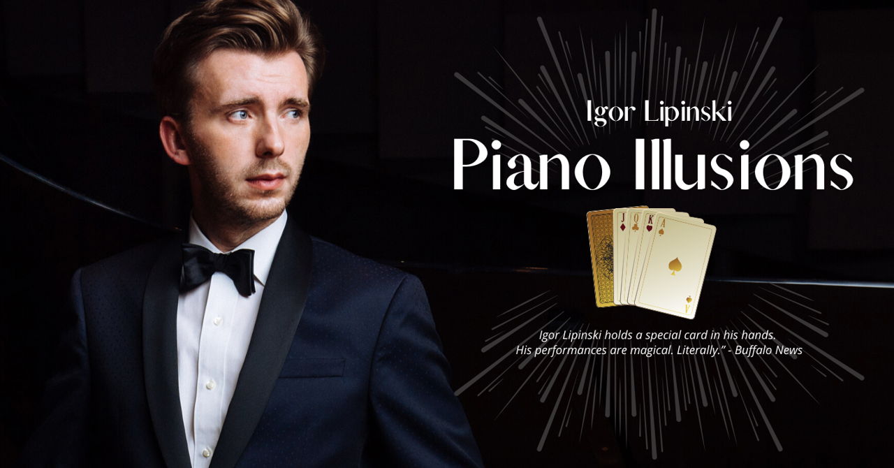 Piano Illusions is a unique recital program featuring pianist and magician Igor Lipinski. Originally from Poland, Lipinski first started working on the program of music and magic as an undergraduate piano performance major at the Eastman School of Music. After an inspiring collaboration on the show with Teller of Las Vegas duo Penn & Teller, Lipinski won the WQXR Classical Comedy Contest at Caroline’s on Broadway.