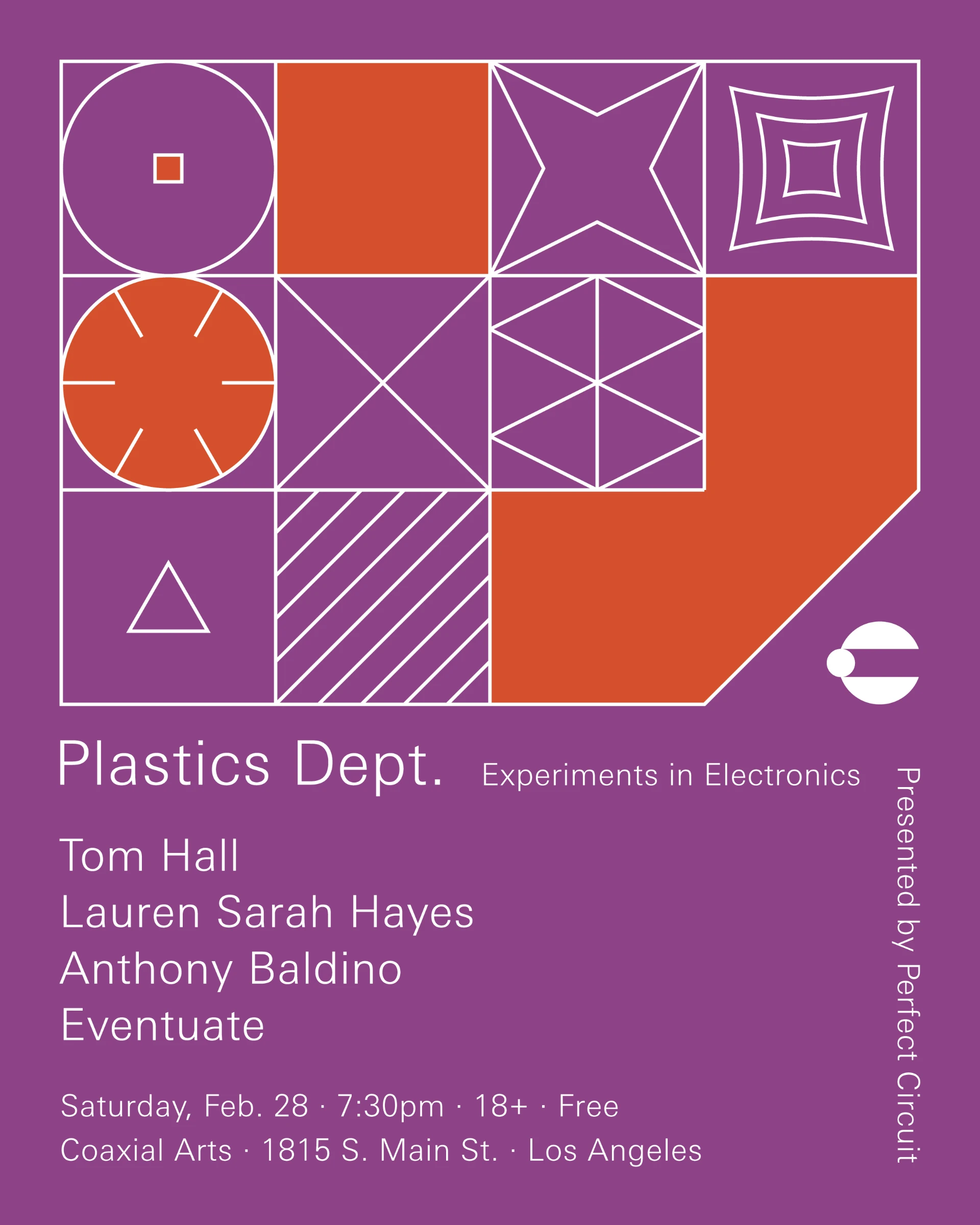 Join us as Coaxial Arts Foundation hosts the Plastics Dept.: a recurring concert series curated by the electronic music enthusiasts at Perfect Circuit.
