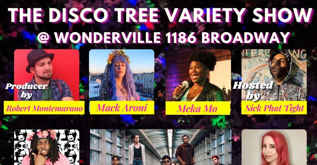 The Disco Tree Variety show is a unique event that features artist from different genres, psychedelic lighting and a dance party celebration. Robert Montemarano (creator of Disco Tree) has been performing in NYC for over 20 years as a musician, DJ and comic. This Brooklyn native brings together rock stars, comics, rappers, dancers, fire spinners, performance artists and random weirdos from Burning Man. Stick around until the end for a disco dance party featuring pro DJS from NYC. You never know what you will see at the Disco Tree.