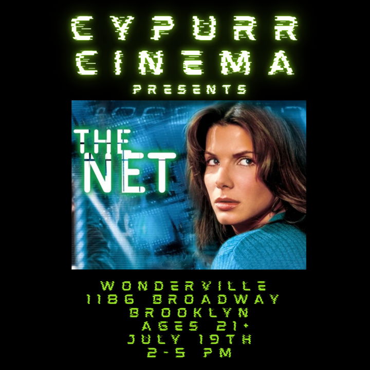 Join the Cypurr folks for an afternoon matinee of The Net (1995, Sandra Bullock, Jeremy Northam, Dennis Miller, Dir: Irwin Winkler) at Wonderville! Movie will be followed by a discussion on tech and cybersecurity