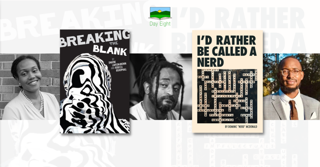 The authors of Breaking the Blank, Rebecca Bishophall and Dwayne Lawson-Brown, and I’d Rather Be Called a Nerd, Dominic “Nerd” McDonald, will read from and discuss their poetry collections at this event. Both books were published by the DC-based nonprofit and publisher Day Eight.