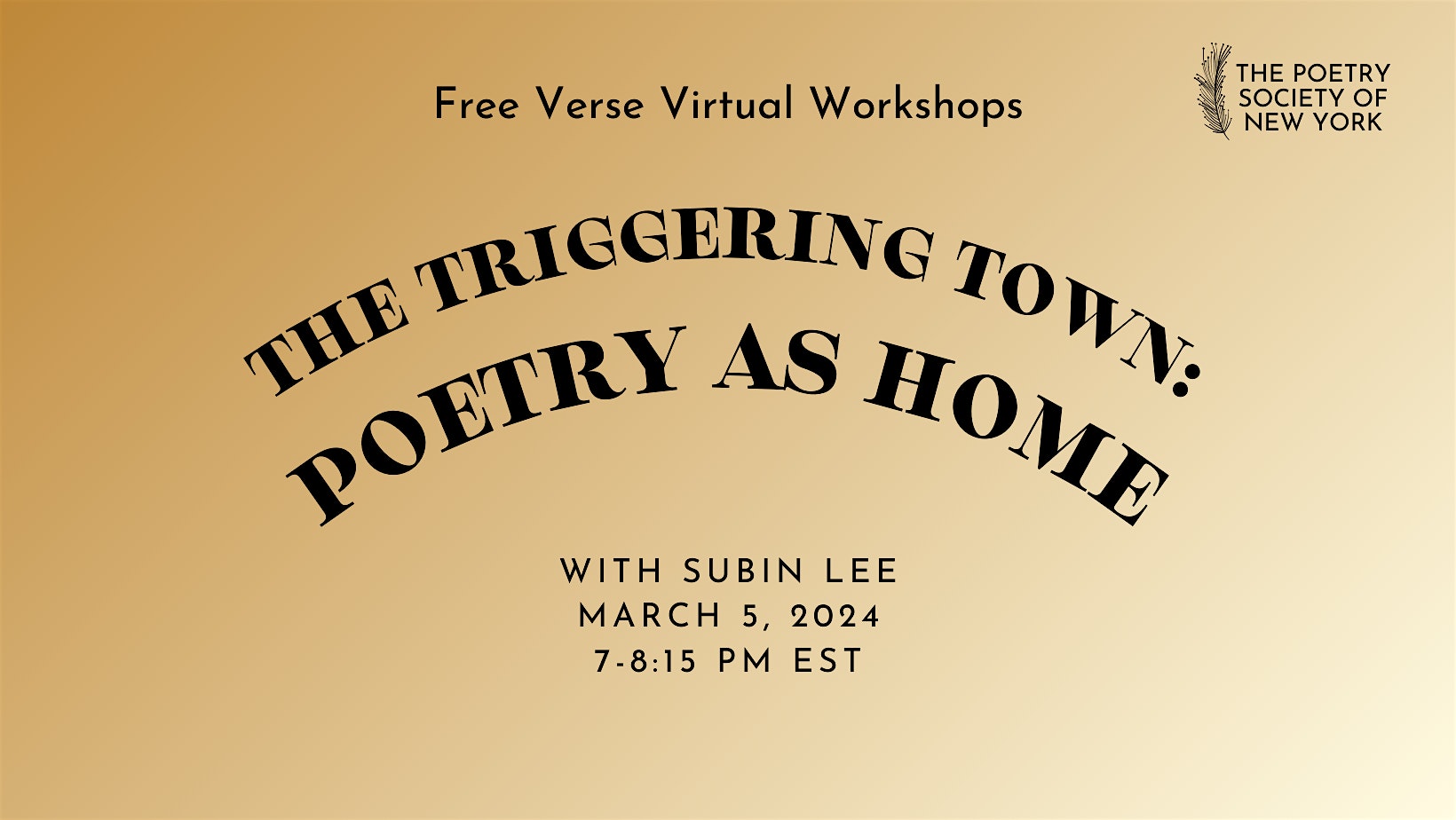 We will find be constructing a poem using a memory of a place as catalyst, following the exercise in Richard Hugo's "The Triggering Town." This workshop analyzes the space between a triggering subject and the generated subject with an emphasis on metaphor as falsification, false reality as a poem's most honest setting, and poetry as home especially in the context of displacement and diaspora.