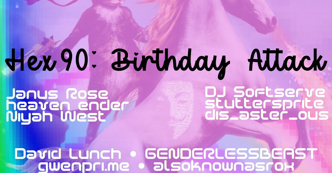 Queer hackers of the world, unite! Tech Learning Collective is excited to invite you to a very special Hex90 party. Our series of queer hacker salons in New York City, Hex90, continues this Summer with Hex90: Birthday Attack, so named because we are simultaneously celebrating the birthdays/tranniversaries of several prominent community members. Join us at our favorite indie arcade venue, Wonderville, for a celebration of trans and non-binary joy, gender affirmation, and the zest for life! Get ready for nostalgic favorites, retro tech, psychedelic, euphoric optimism, and of course prepare to hack the planet!