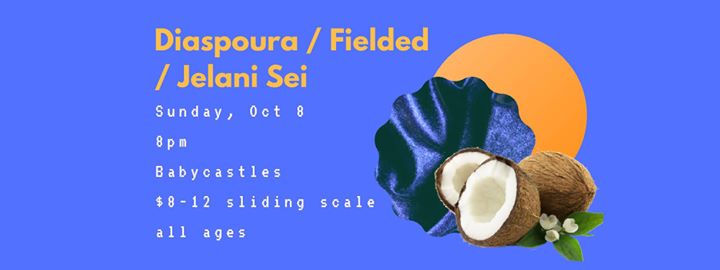 Diaspoura, a DIY downtempo electronic artist from the Carolinas, is on her first NE tour with her 5 piece backing band, and making a stop in NYC thanks to Babycastles and the incredible local support of FIELDED and Jelani Sei.