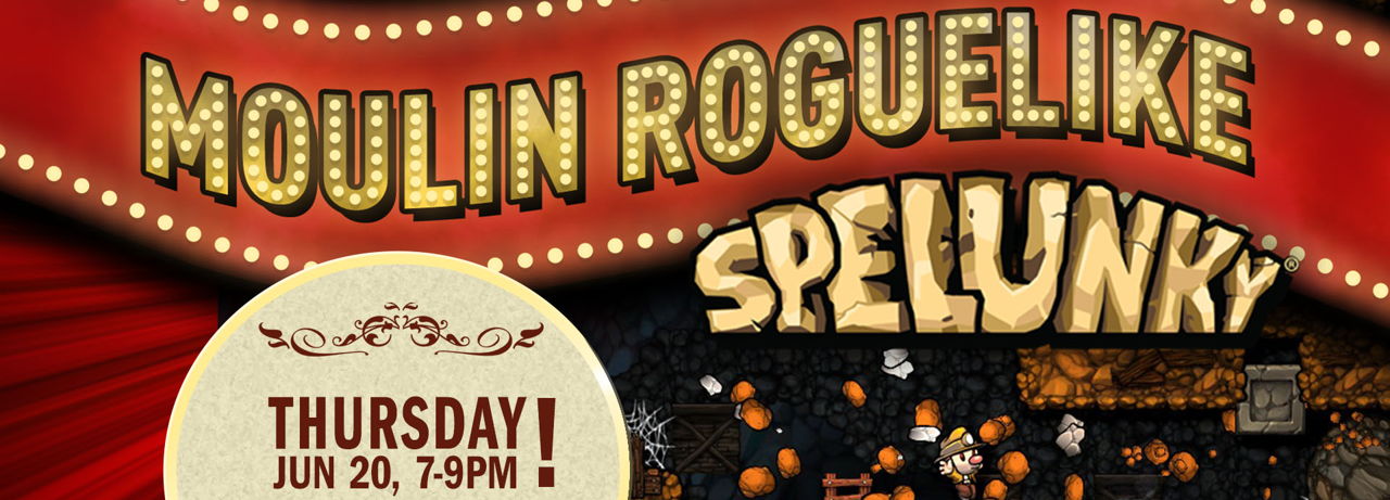 Come out and test your roguelike skills with Spelunky by Derek Yu! We’ll be warming up with some normal runs before doing the Daily Challenge on the big screen. Everybody will get the same dungeon so watch and learn from other adventurers as we seek Olmec’s gold!