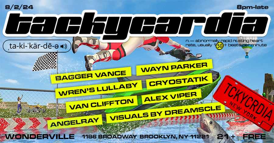 Joining us for this iteration are NYC dnb stalwart Bagger Vance who is coming off of his Sunken Suite festival debut set as well as Wayn Parker whose recent sets at Made To Order and Wired Wednesday set off dancefloors. Also performing is angelRay whose events as part of the HALO crew have been making waves around the queer circuit. Wren’s Lullaby will be joining us fresh off of a set for Weyland Party as well as Van Cliffton and Tackycardia residents Cryostatik and Alex Viper.
