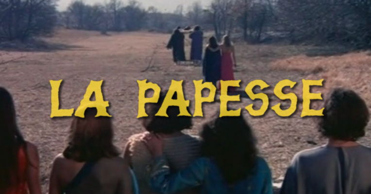 Despite some of its more extreme contents, LA PAPESSE is often unfairly derided as euro-sleaze trash. This assessment was fueled by the French government’s censorship of the film upon its release. Originally pulled in its first week and re-released with an X rating (or the French equivalent?) back into the pornography theater circuit where it was not well received. Not sleazy enough for the porn theaters, but too sleazy for the general public. This censorship process seemingly ended Mercier’s short filmmaking career, with him choosing to shift his focus back to writing, painting and practicing shamanism.