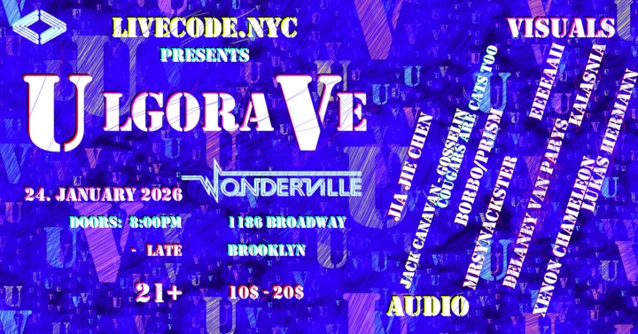 An algorave, with an emphasis on the Us, Vs, and UVs involved in kicking off a new year of live-coding togetherness.