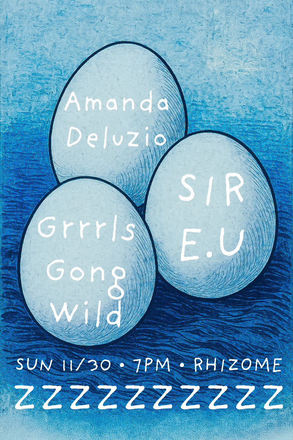 ZZZZZZZZZZ (ズズズズズズズズズズ)は、ゴングバス、テルミン、植物シンセサイザー、カセットループ、詩、アンビエントドローン、そしてヴァイナルDJセットなどの音色を織り交ぜた、超越的なサウンドうたた寝体験です。実験的な音の風景に包まれながら、心地よい眠りへと漂いましょう。マット、毛布、水など、必要に応じてお持ちください。