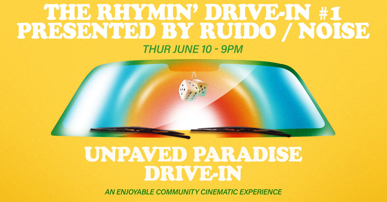 "Ruido/Noise presents “The Rhymin’ Drive-In,” where hip-hop music meets foreign language films. With your hosts - musician/educator Deaven Bean and director of Ruido/Noise Jay Roff-Garcia. We choose a stellar film to pair with a scrumptous local hip-hop performance, including some choice edits and fun inclusions for the feature film.