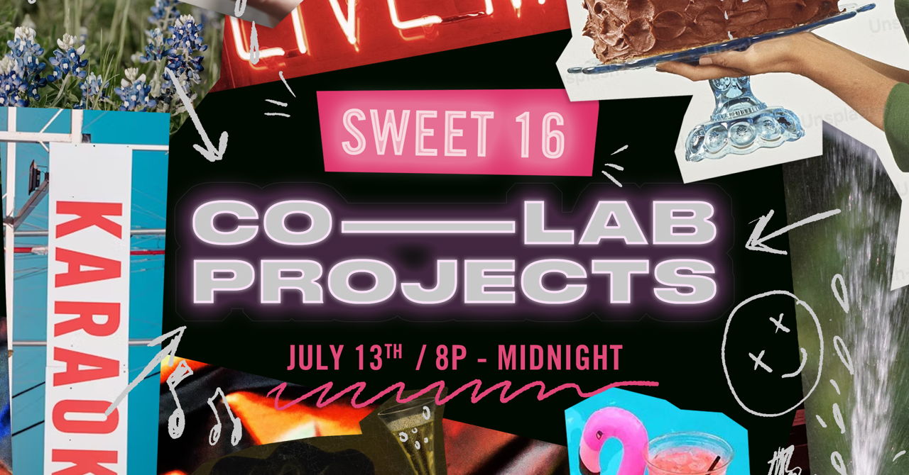 On July 13th we are celebrating Co-Lab’s Sweet 16th by throwing ourselves a fierce birthday party in the form of a membership drive and fundraiser benefiting our fall programming. Featuring our summer group exhibition “Inter Being”, live music by your favorite local bands, a ‘Super Sweet 16’ themed Karaoke stage, water balloon fights, tiaras, food by Zee’s Wiener System, and a spoiled rotten bar sponsored by local brewers and spirit makers.